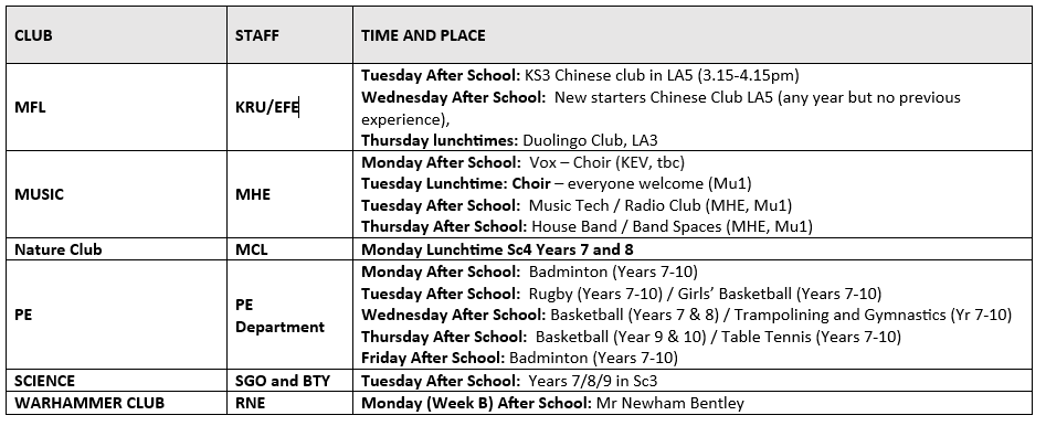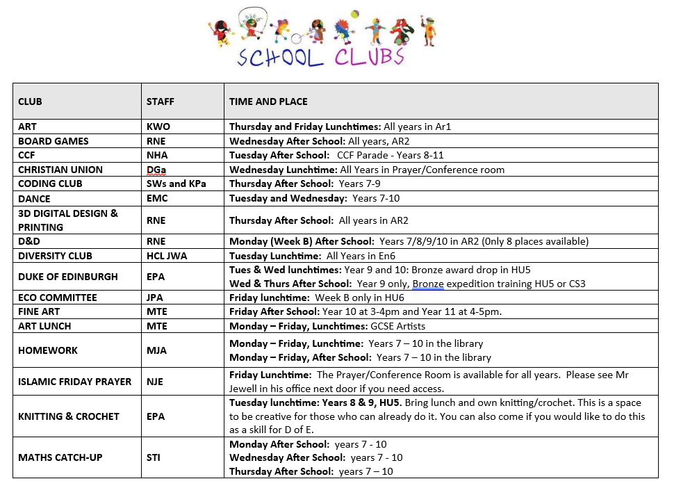 We are very proud to promote an extensive range of high-quality clubs, enrichment activities and trips to our students. Our aim is to build upon and develop existing and new opportunities, encouraging our students' participation.